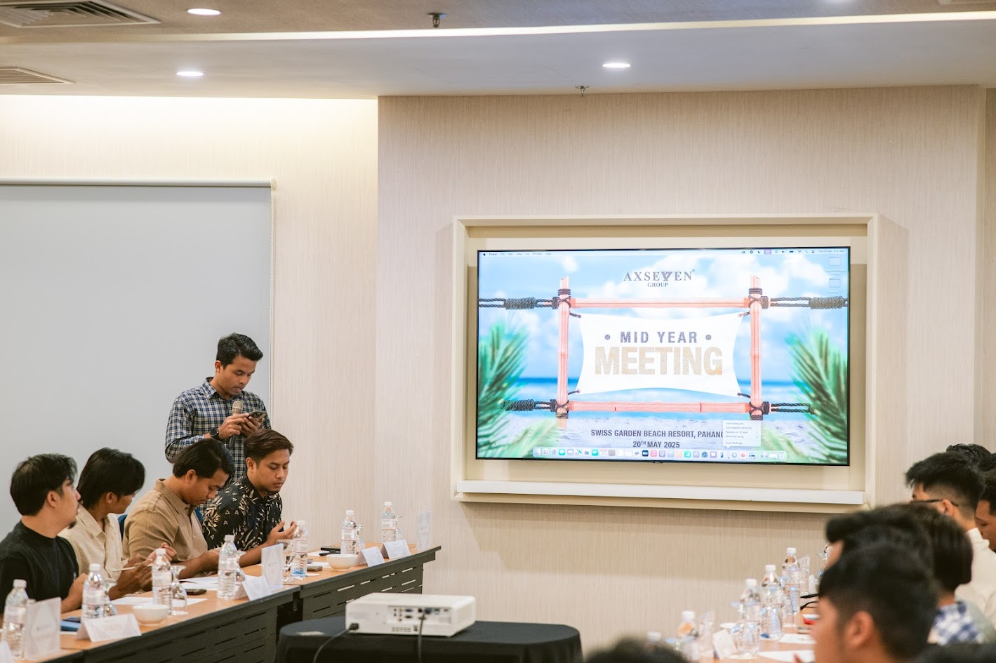 Bengkel Strategi Korporat: Sesi perbincangan dalam dewan yang selesa bagi menyelaraskan visi dan misi Axseven Group untuk fasa seterusnya.